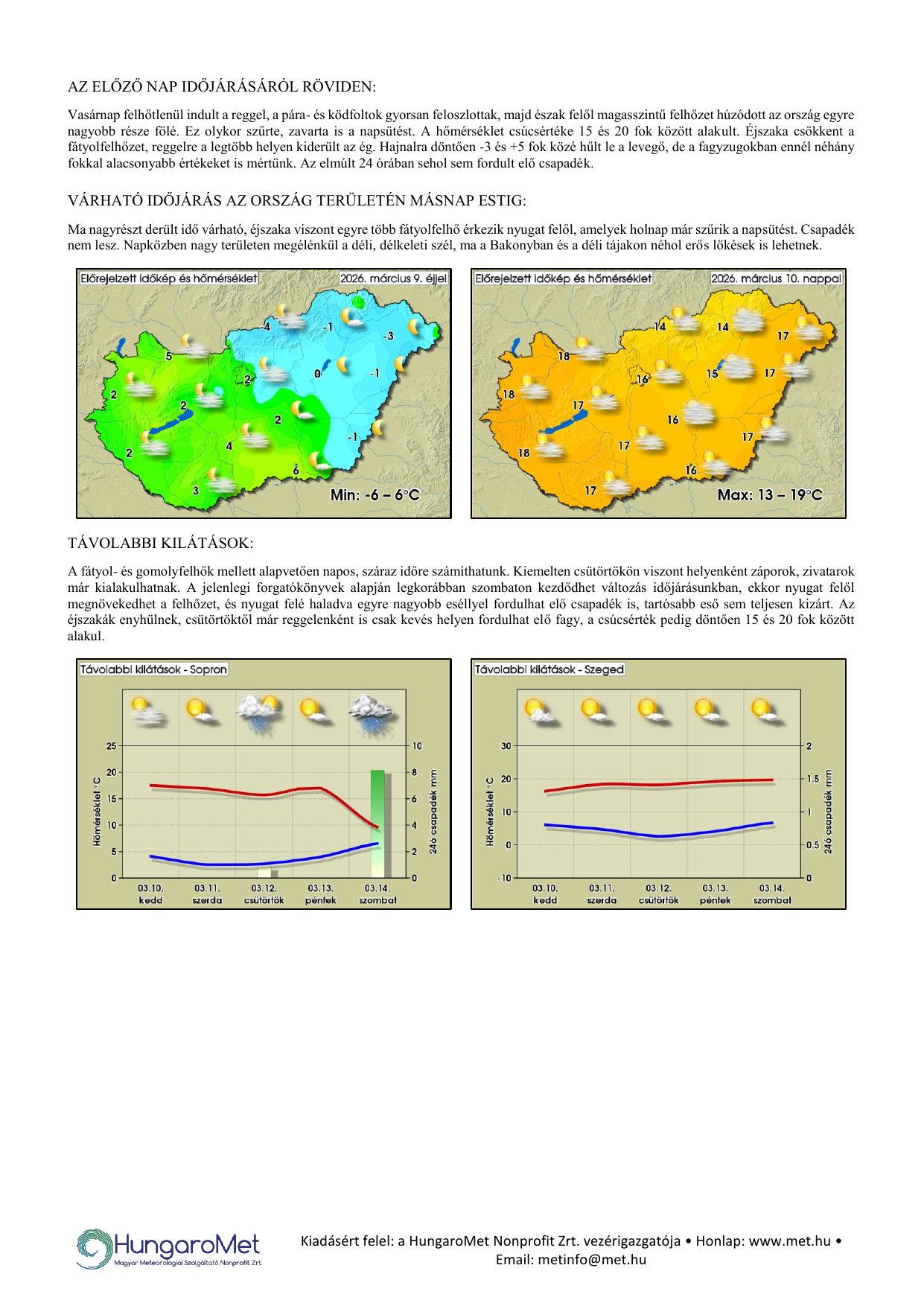 • minimum és maximumhőmérséklet: előző nap 19 CET-től aznap 19 CET-ig,